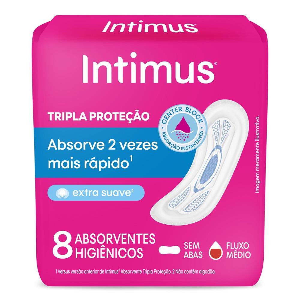 INTIMUS ABSORVENTE TRIPLA PROTEÇÃO EXTRA SUAVE COM 8 UNIDADES